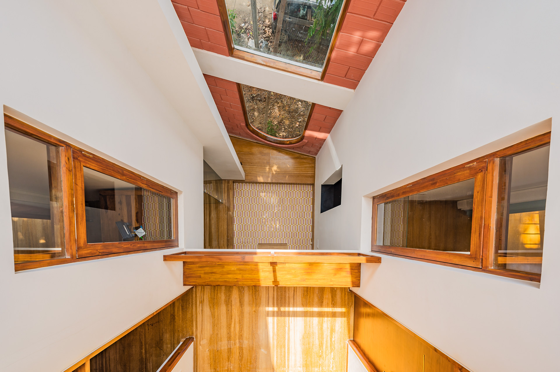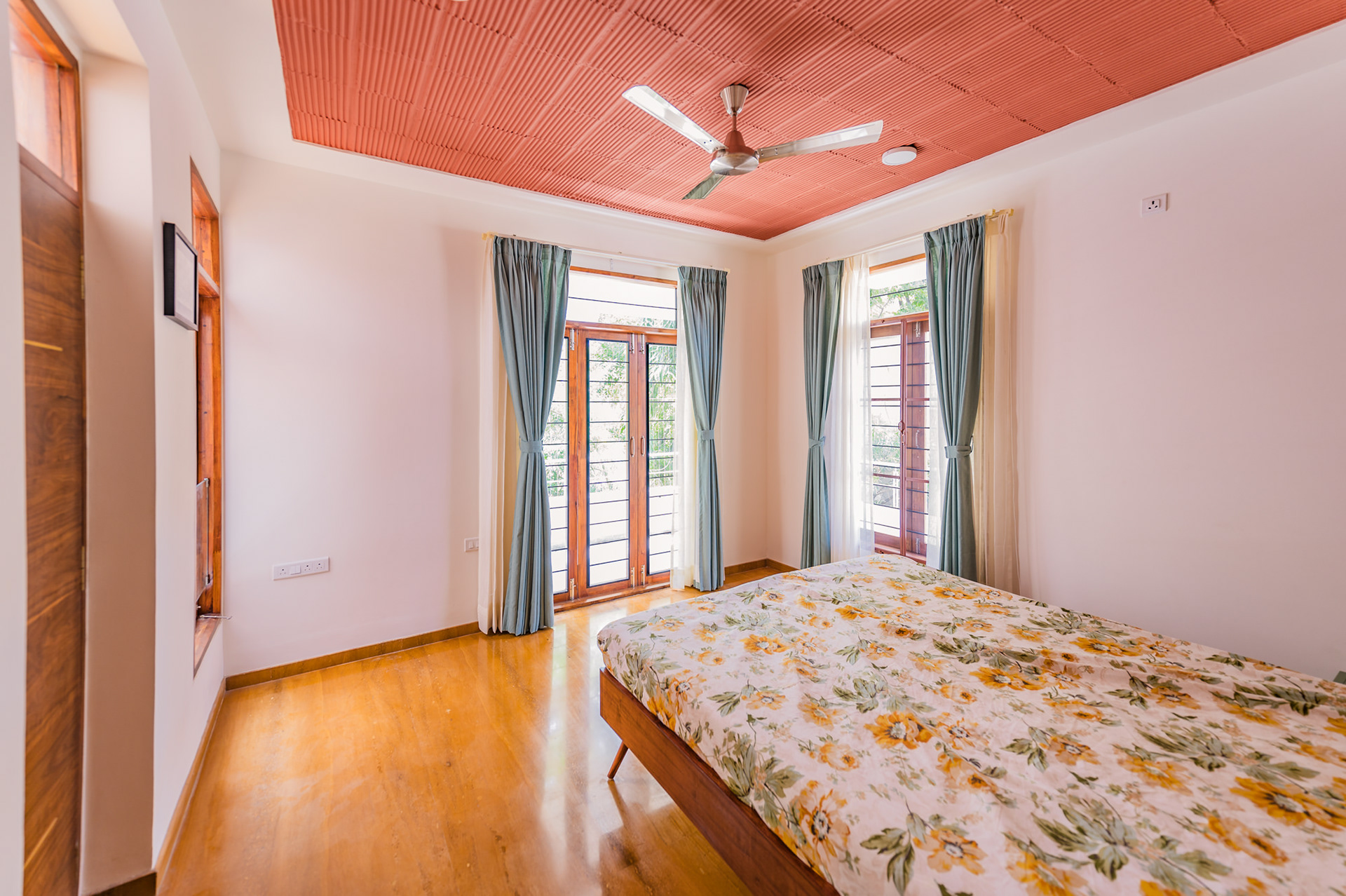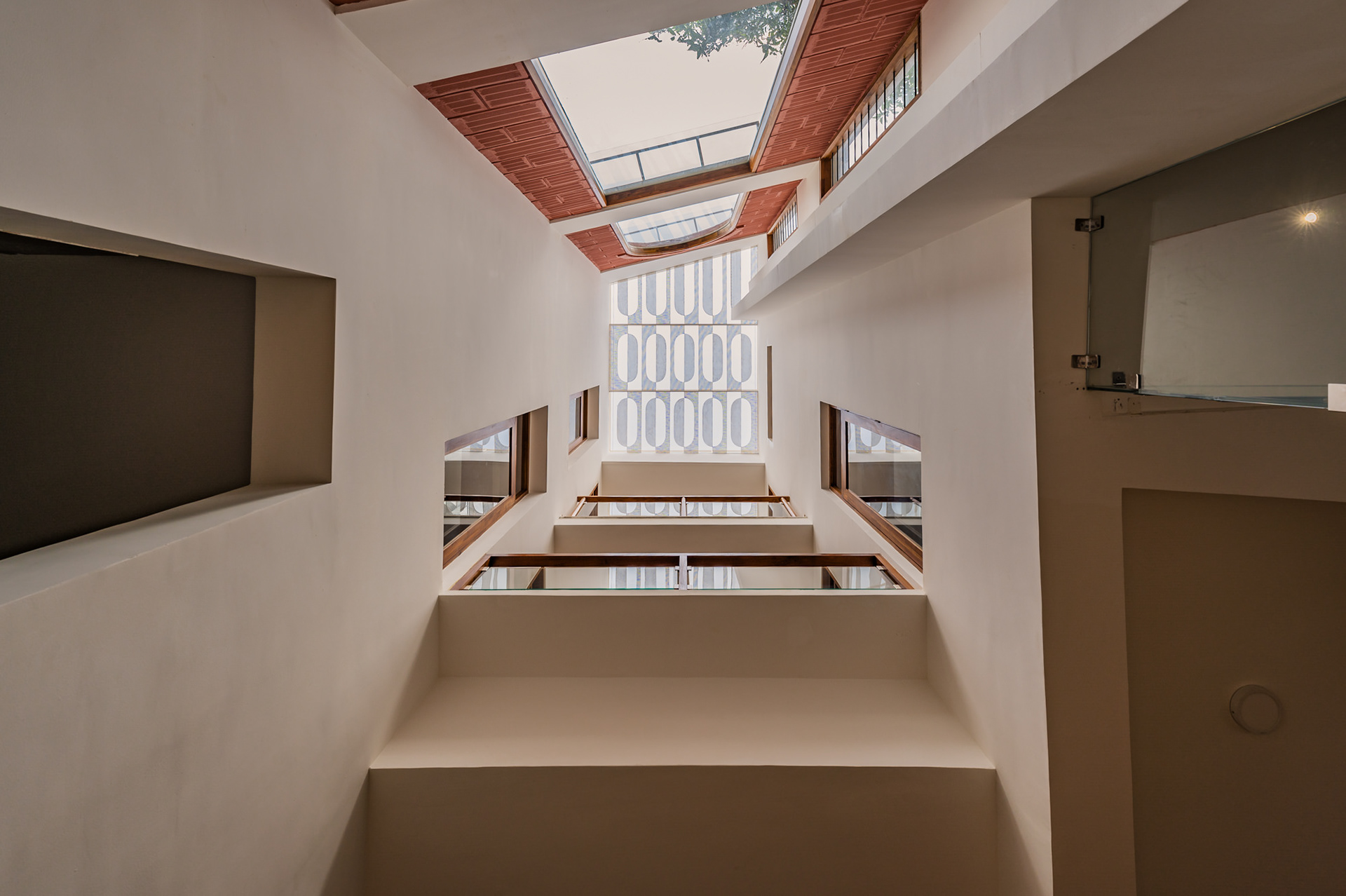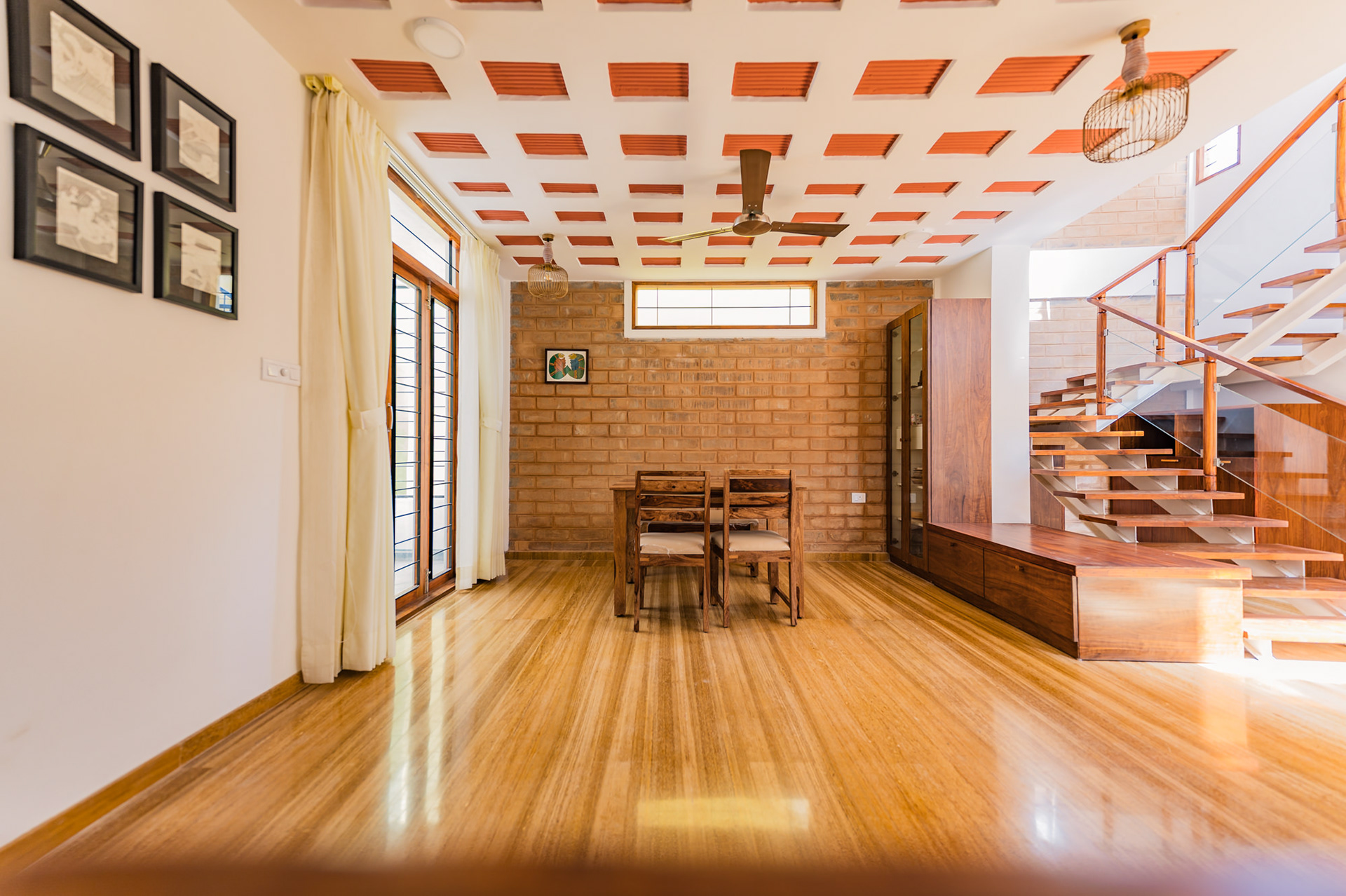 The home is designed to honour the trees flanking the site and to be a respite to come back to from Dubai for Santosh and Deepali.