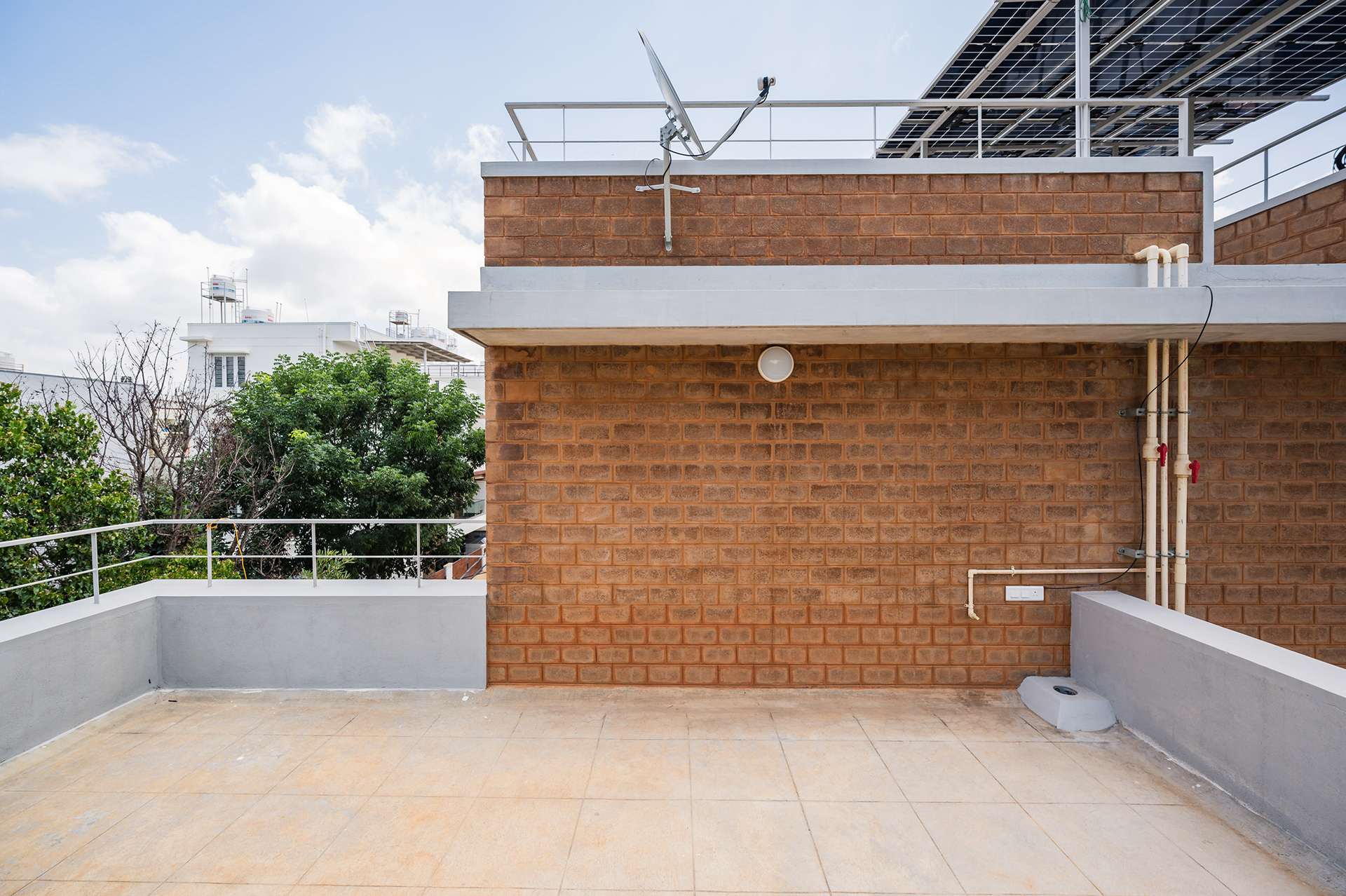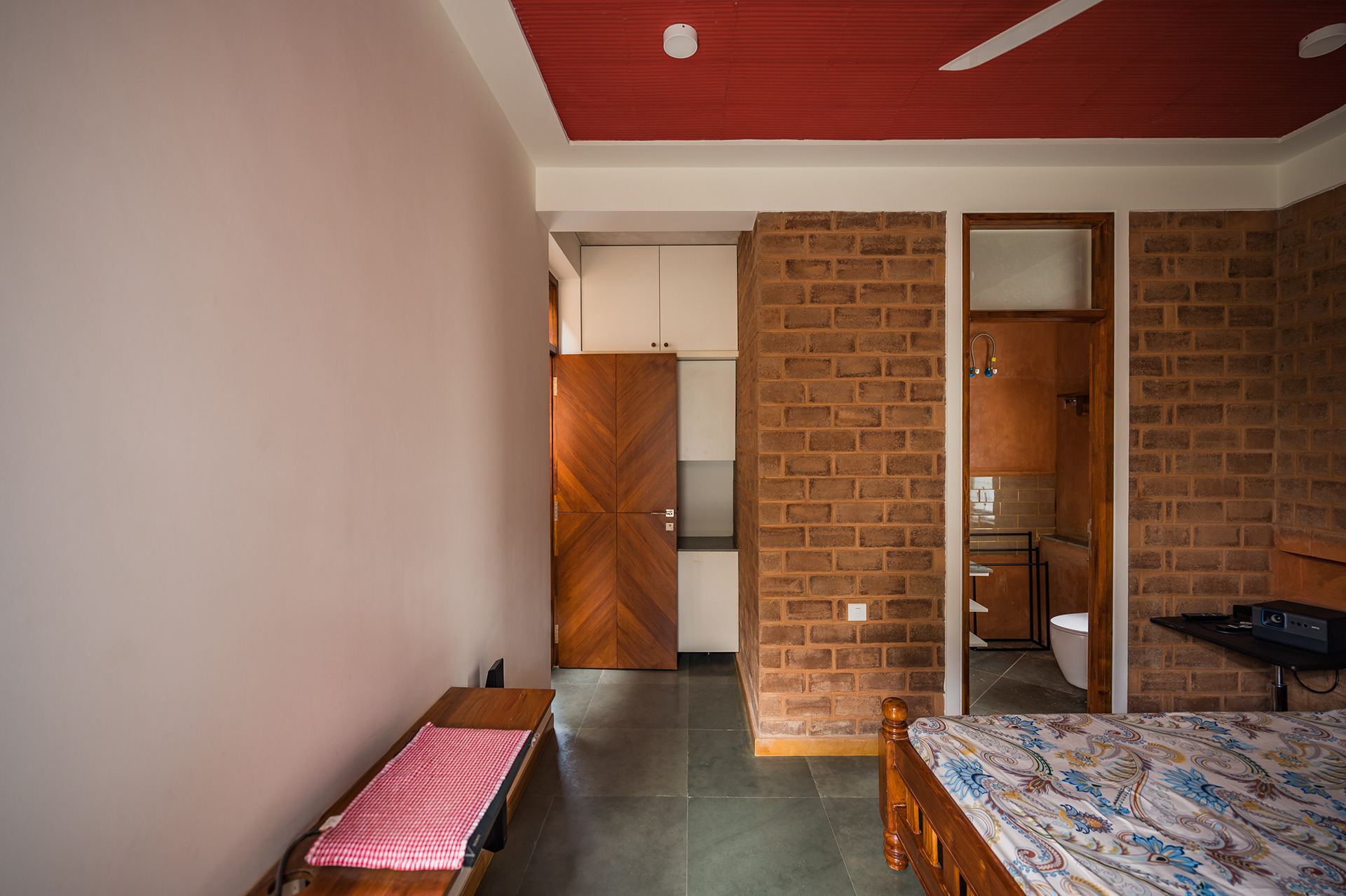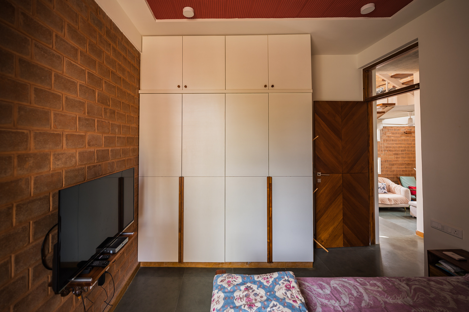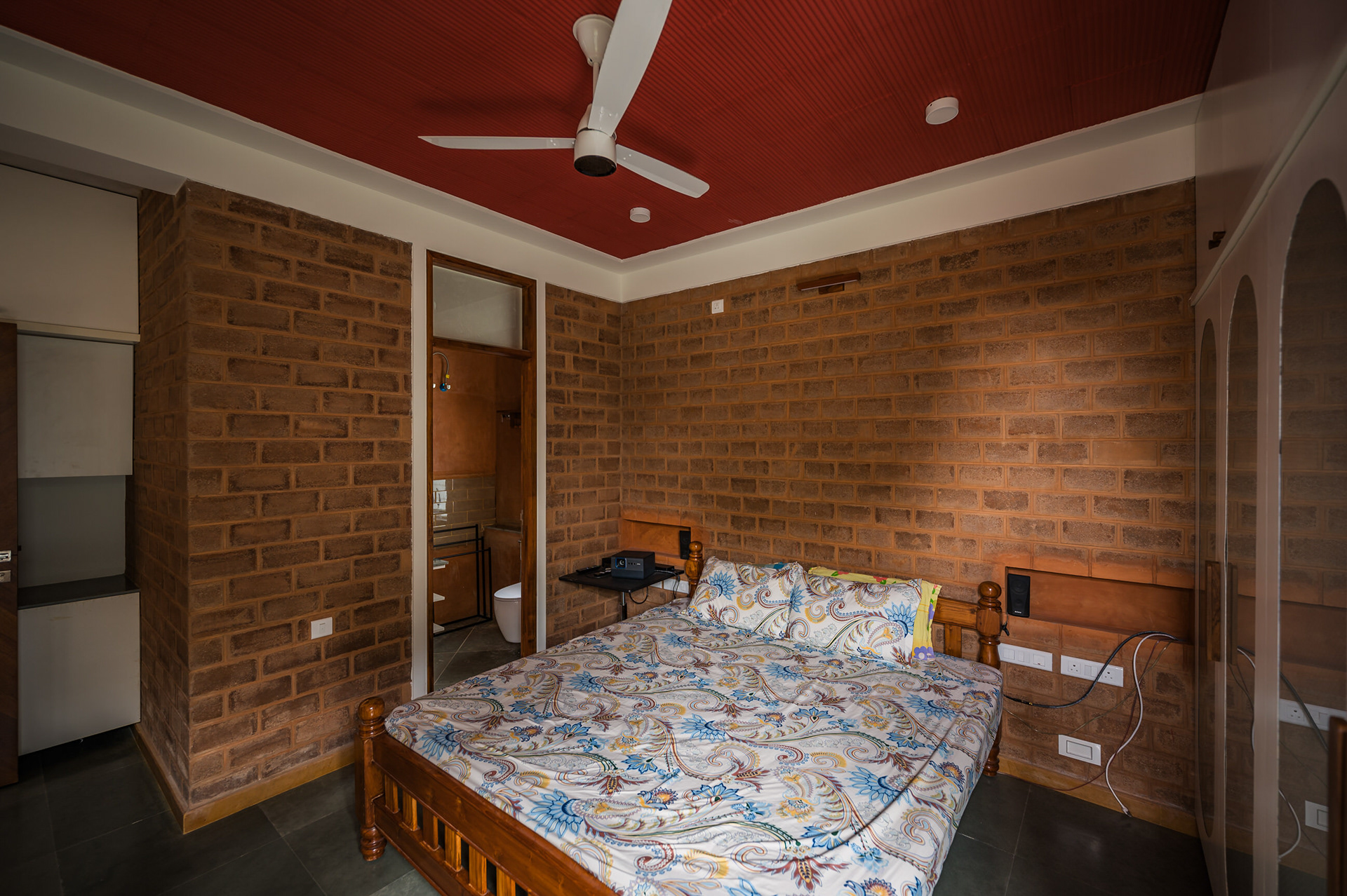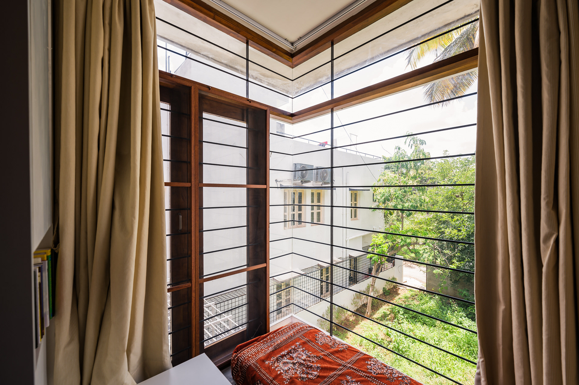Divyadarshana — A Home Rooted in Material Warmth and Light (Designed and Executed by Studio Alaya | Photography & Project narrative by Ravi Teja Devarakonda) Nestled in the quiet lanes of Bengaluru’s Telecom Layout, Divyadarshana Residence was designed as a warm, functional, and light-filled home for Divya, a homemaker, and Darshan, a software engineer, along with their young daughter. The family envisioned a space that feels open and connected, yet private and calm — a home that resonates with simplicity and honesty. The design approach stemmed from this intent — to create a residence that breathes, where natural light, ventilation, and materiality work together to shape a tranquil everyday experience. The exposed brick façade, interspersed with vertical jaalis, establishes a rhythmic play of solids and voids while bringing filtered daylight into the interiors. The restrained use of concrete bands and wooden textures adds depth and balance to the overall composition. Inside, spaces unfold naturally — the living, dining, and kitchen areas flow into one another, extending toward a small sit-out that connects the indoors with the outdoors. At the heart of the home lies a vertical spine — a staircase crowned by a skylight that draws daylight deep into the house, tying all three levels together visually and spatially. Each material and proportion has been chosen for its integrity and timelessness, allowing the home to age gracefully while maintaining a quiet character. Divyadarshana embodies Studio Alaya’s belief that good architecture is not about excess but about balance — between function and feeling, openness and intimacy, light and form. Design Team: Ar. Lavannya Goradia, Aditi Salunke, Richa Kriplani, SB Namitha, Gitanjali, Karishma Execution Team: Deekshith RN, Praveen Cariappa, Shalini Bai, Rishab Kapoor