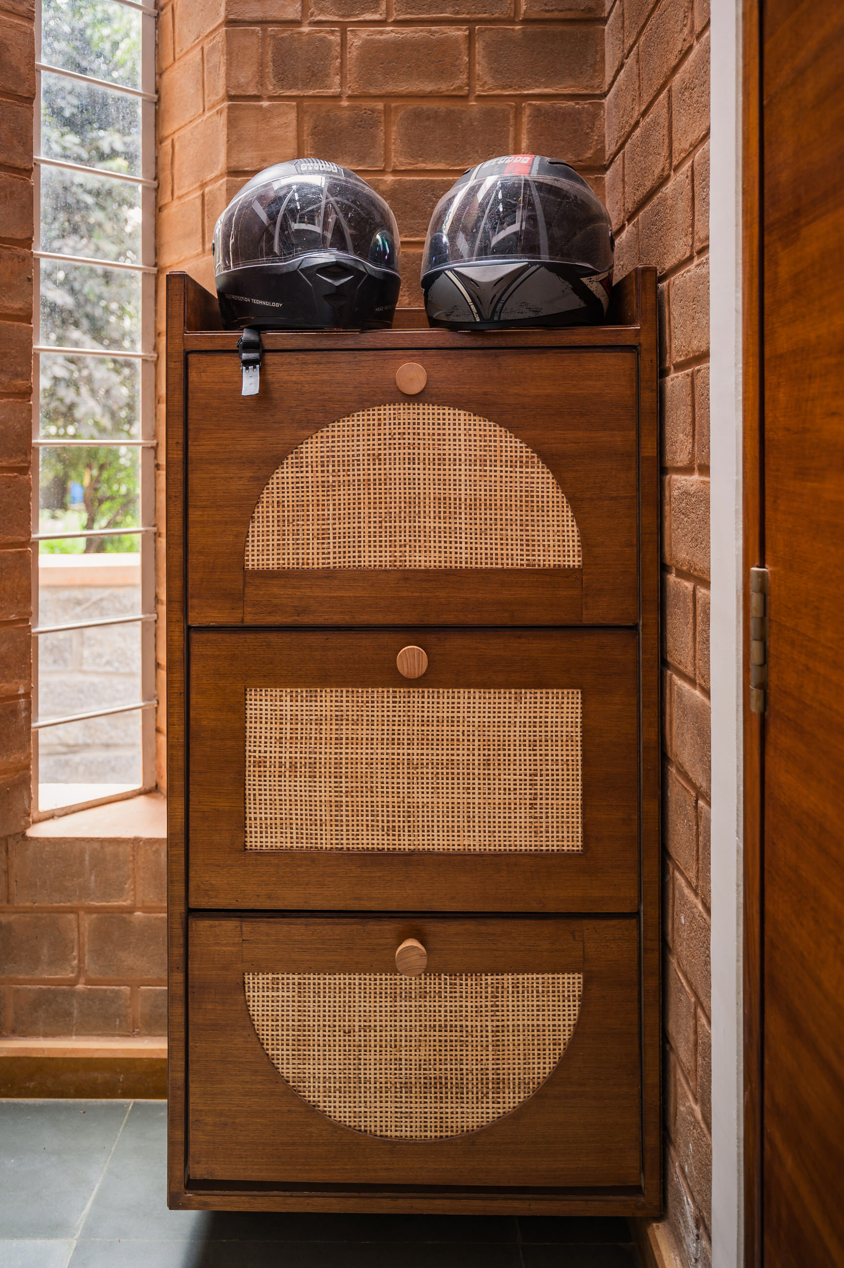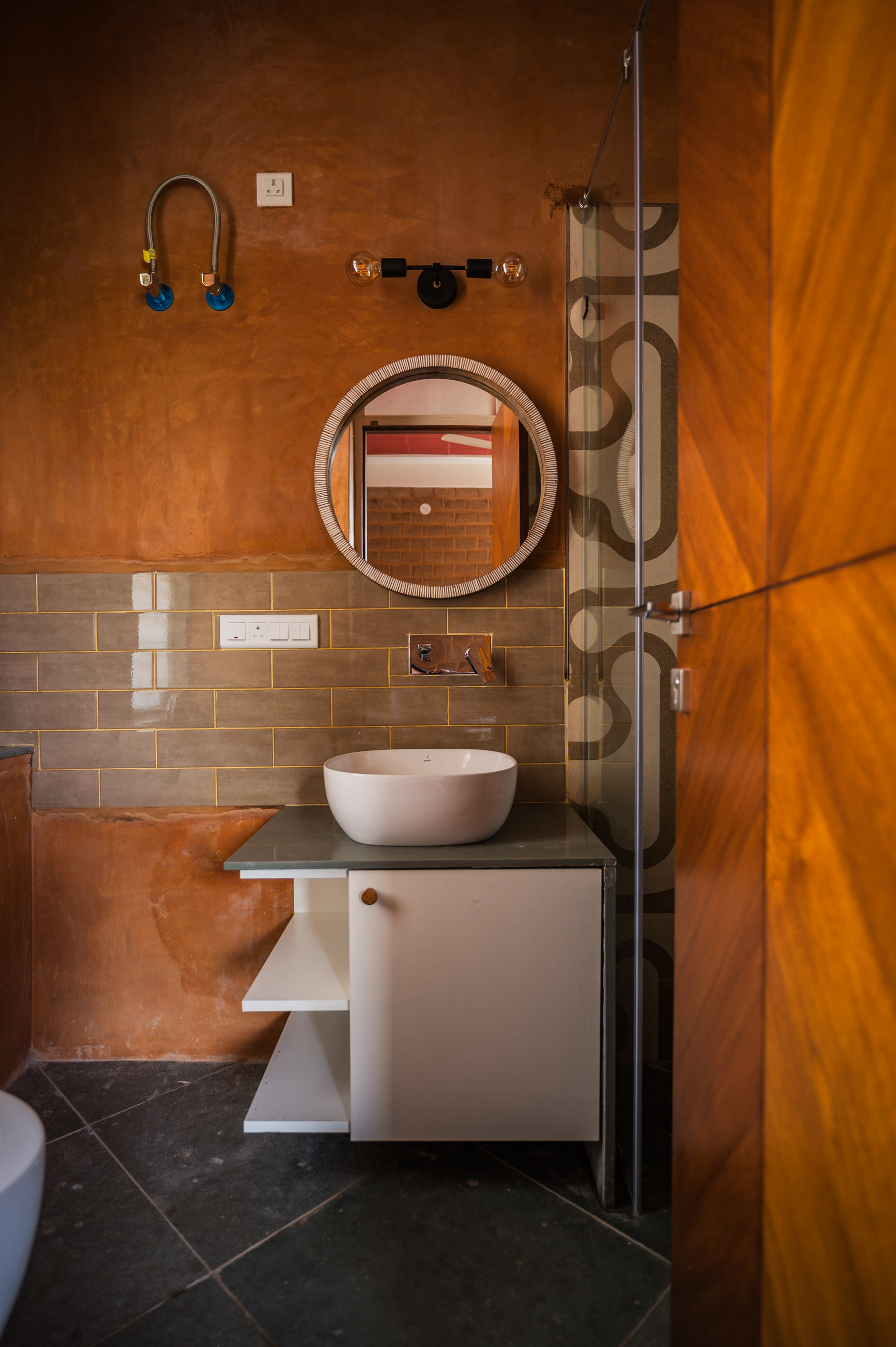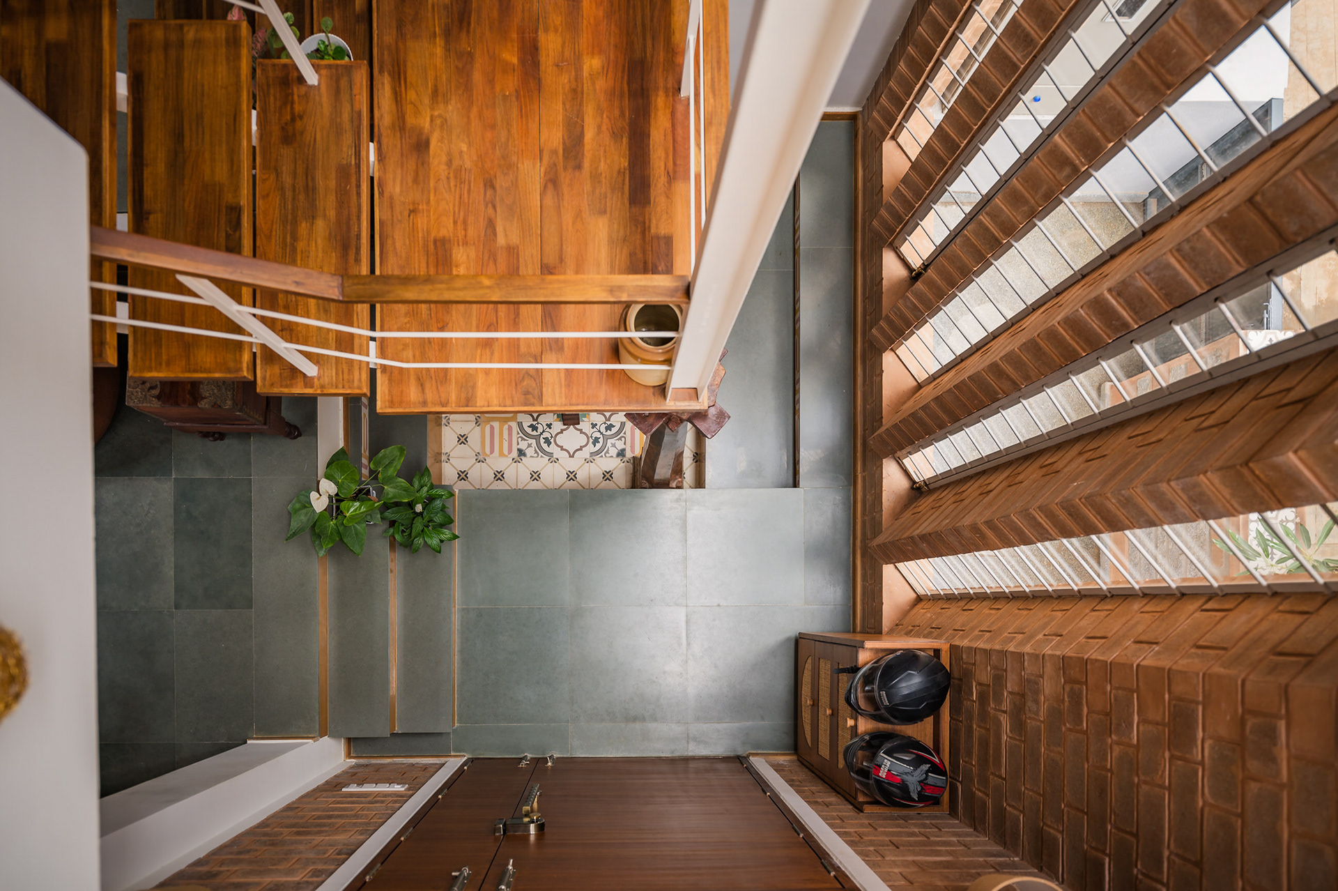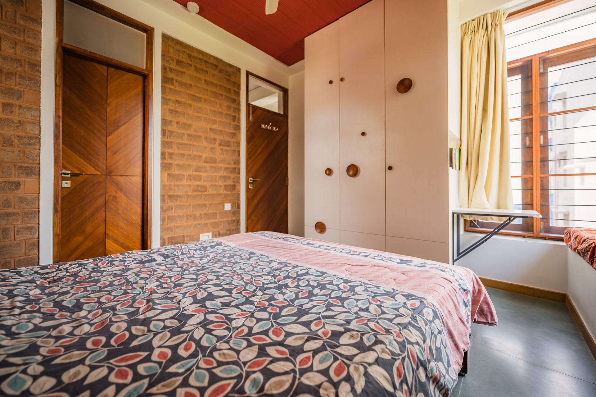 Divyadarshana — A Home Rooted in Material Warmth and Light (Designed and Executed by Studio Alaya | Photography & Project narrative by Ravi Teja Devarakonda) Nestled in the quiet lanes of Bengaluru’s Telecom Layout, Divyadarshana Residence was designed as a warm, functional, and light-filled home for Divya, a homemaker, and Darshan, a software engineer, along with their young daughter. The family envisioned a space that feels open and connected, yet private and calm — a home that resonates with simplicity and honesty. The design approach stemmed from this intent — to create a residence that breathes, where natural light, ventilation, and materiality work together to shape a tranquil everyday experience. The exposed brick façade, interspersed with vertical jaalis, establishes a rhythmic play of solids and voids while bringing filtered daylight into the interiors. The restrained use of concrete bands and wooden textures adds depth and balance to the overall composition. Inside, spaces unfold naturally — the living, dining, and kitchen areas flow into one another, extending toward a small sit-out that connects the indoors with the outdoors. At the heart of the home lies a vertical spine — a staircase crowned by a skylight that draws daylight deep into the house, tying all three levels together visually and spatially. Each material and proportion has been chosen for its integrity and timelessness, allowing the home to age gracefully while maintaining a quiet character. Divyadarshana embodies Studio Alaya’s belief that good architecture is not about excess but about balance — between function and feeling, openness and intimacy, light and form. Design Team: Ar. Lavannya Goradia, Aditi Salunke, Richa Kriplani, SB Namitha, Gitanjali, Karishma Execution Team: Deekshith RN, Praveen Cariappa, Shalini Bai, Rishab Kapoor