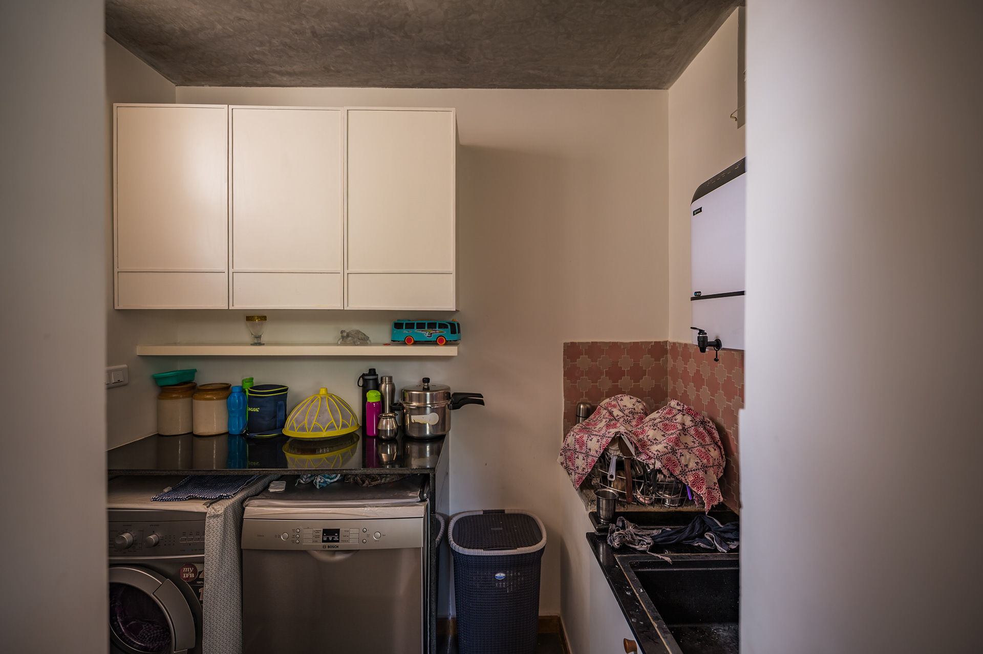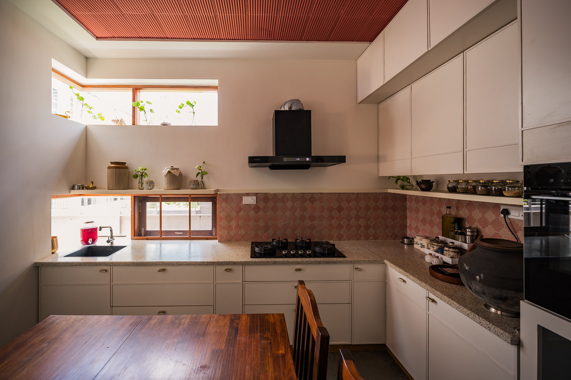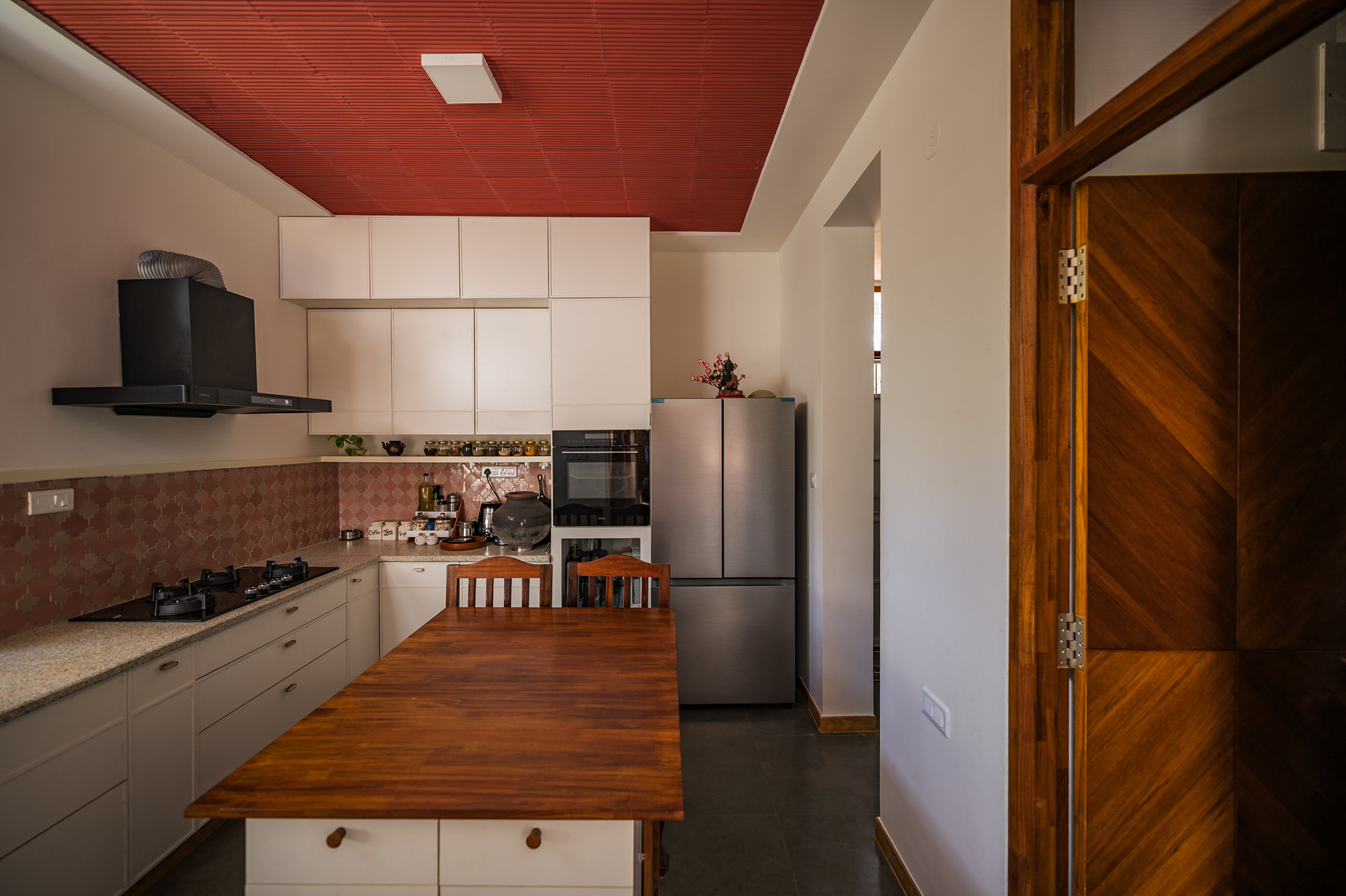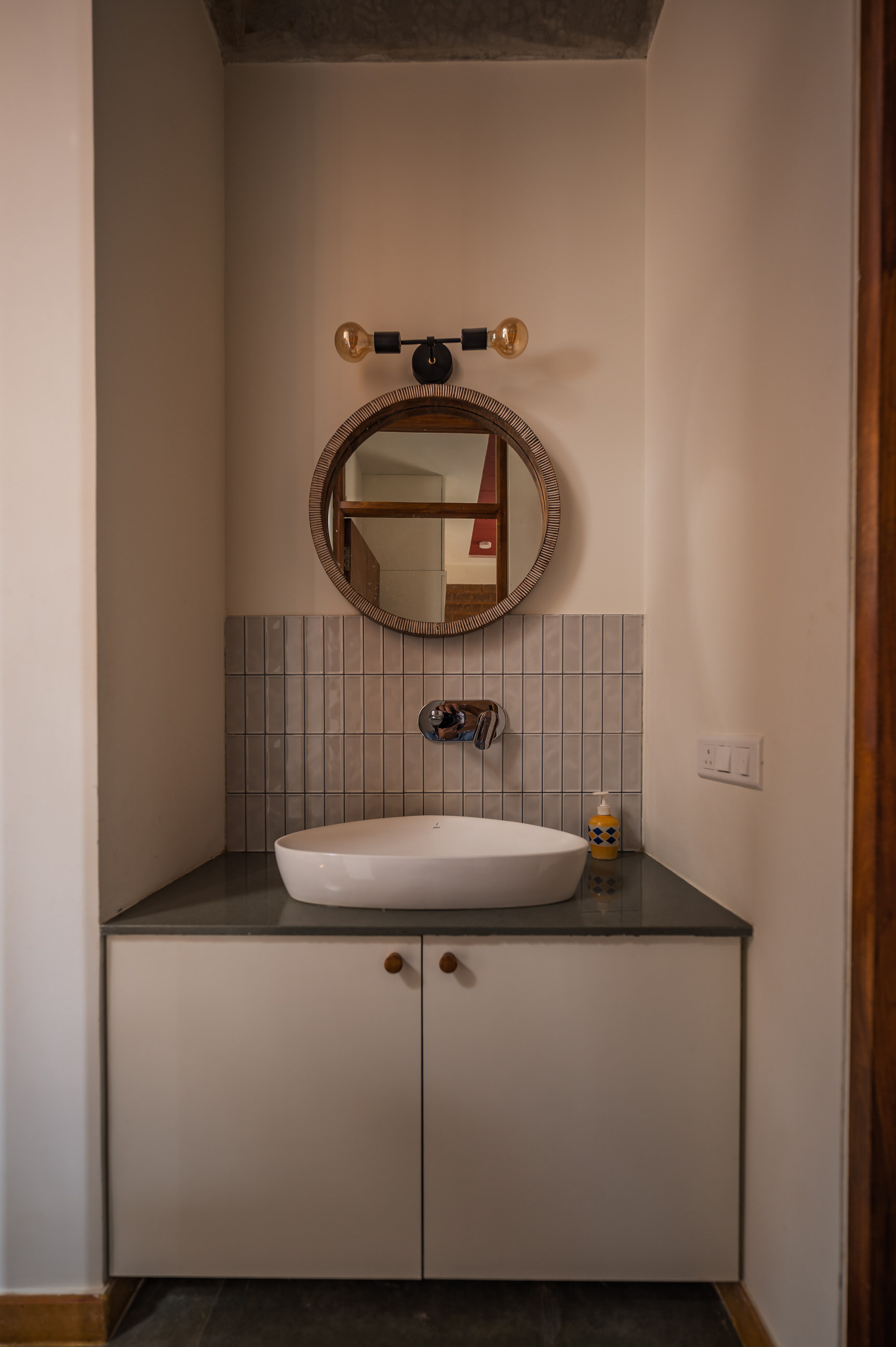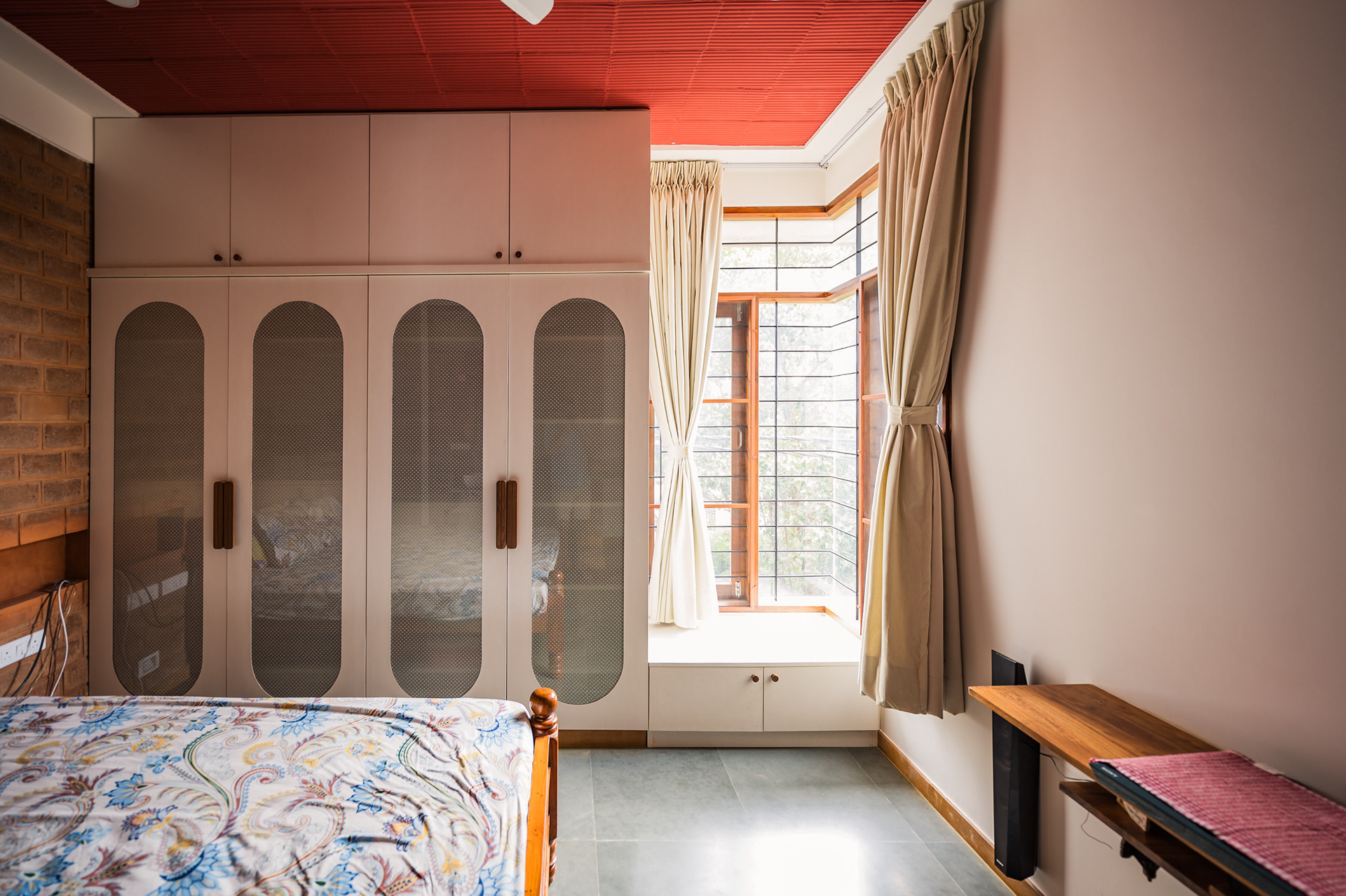 Divyadarshana — A Home Rooted in Material Warmth and Light (Designed and Executed by Studio Alaya | Photography & Project narrative by Ravi Teja Devarakonda) Nestled in the quiet lanes of Bengaluru’s Telecom Layout, Divyadarshana Residence was designed as a warm, functional, and light-filled home for Divya, a homemaker, and Darshan, a software engineer, along with their young daughter. The family envisioned a space that feels open and connected, yet private and calm — a home that resonates with simplicity and honesty. The design approach stemmed from this intent — to create a residence that breathes, where natural light, ventilation, and materiality work together to shape a tranquil everyday experience. The exposed brick façade, interspersed with vertical jaalis, establishes a rhythmic play of solids and voids while bringing filtered daylight into the interiors. The restrained use of concrete bands and wooden textures adds depth and balance to the overall composition. Inside, spaces unfold naturally — the living, dining, and kitchen areas flow into one another, extending toward a small sit-out that connects the indoors with the outdoors. At the heart of the home lies a vertical spine — a staircase crowned by a skylight that draws daylight deep into the house, tying all three levels together visually and spatially. Each material and proportion has been chosen for its integrity and timelessness, allowing the home to age gracefully while maintaining a quiet character. Divyadarshana embodies Studio Alaya’s belief that good architecture is not about excess but about balance — between function and feeling, openness and intimacy, light and form. Design Team: Ar. Lavannya Goradia, Aditi Salunke, Richa Kriplani, SB Namitha, Gitanjali, Karishma Execution Team: Deekshith RN, Praveen Cariappa, Shalini Bai, Rishab Kapoor