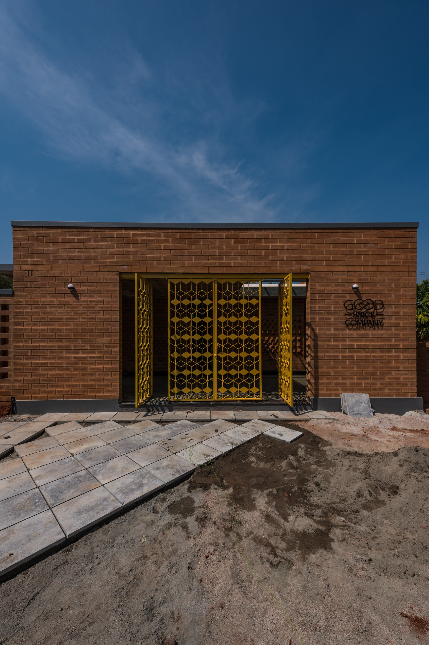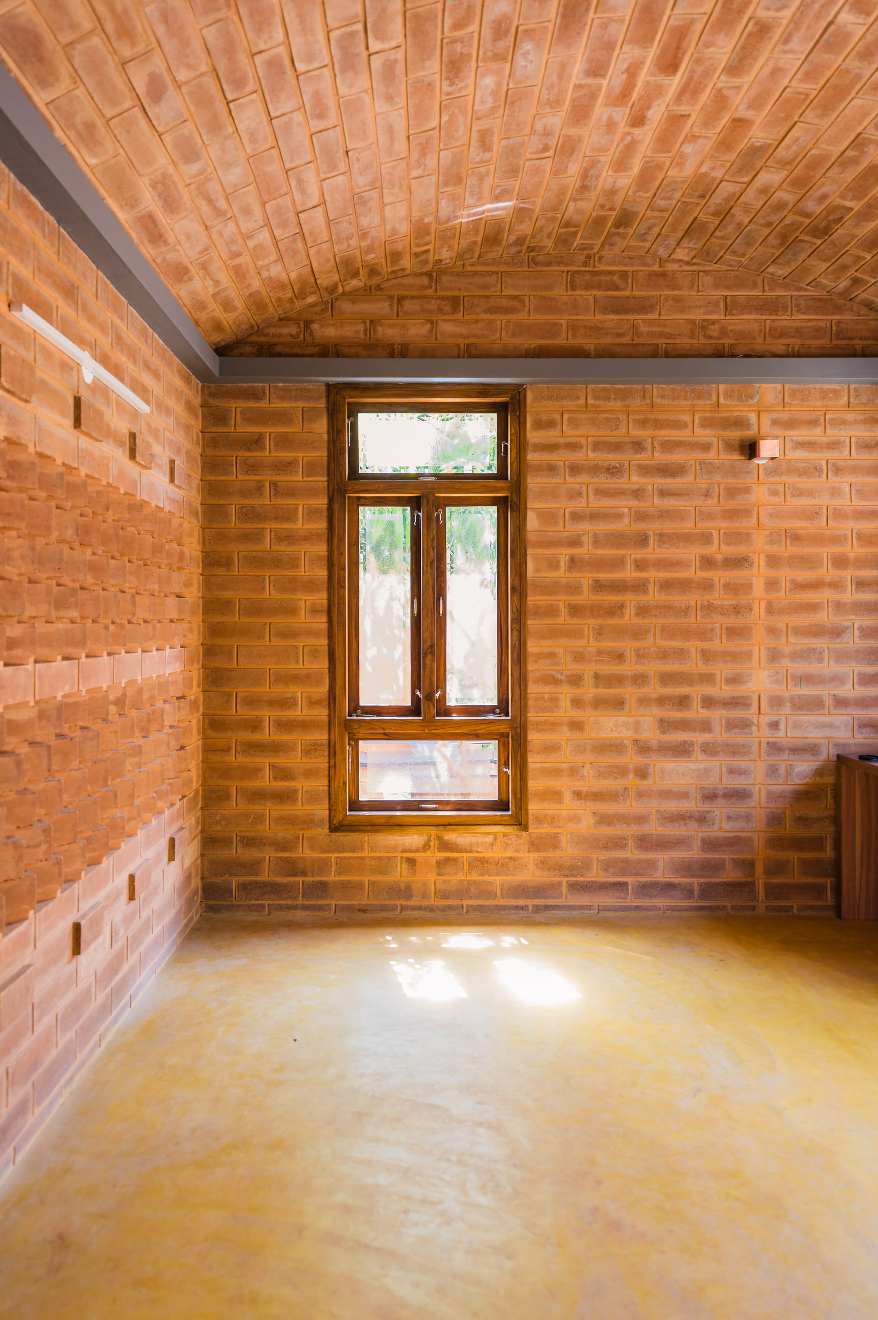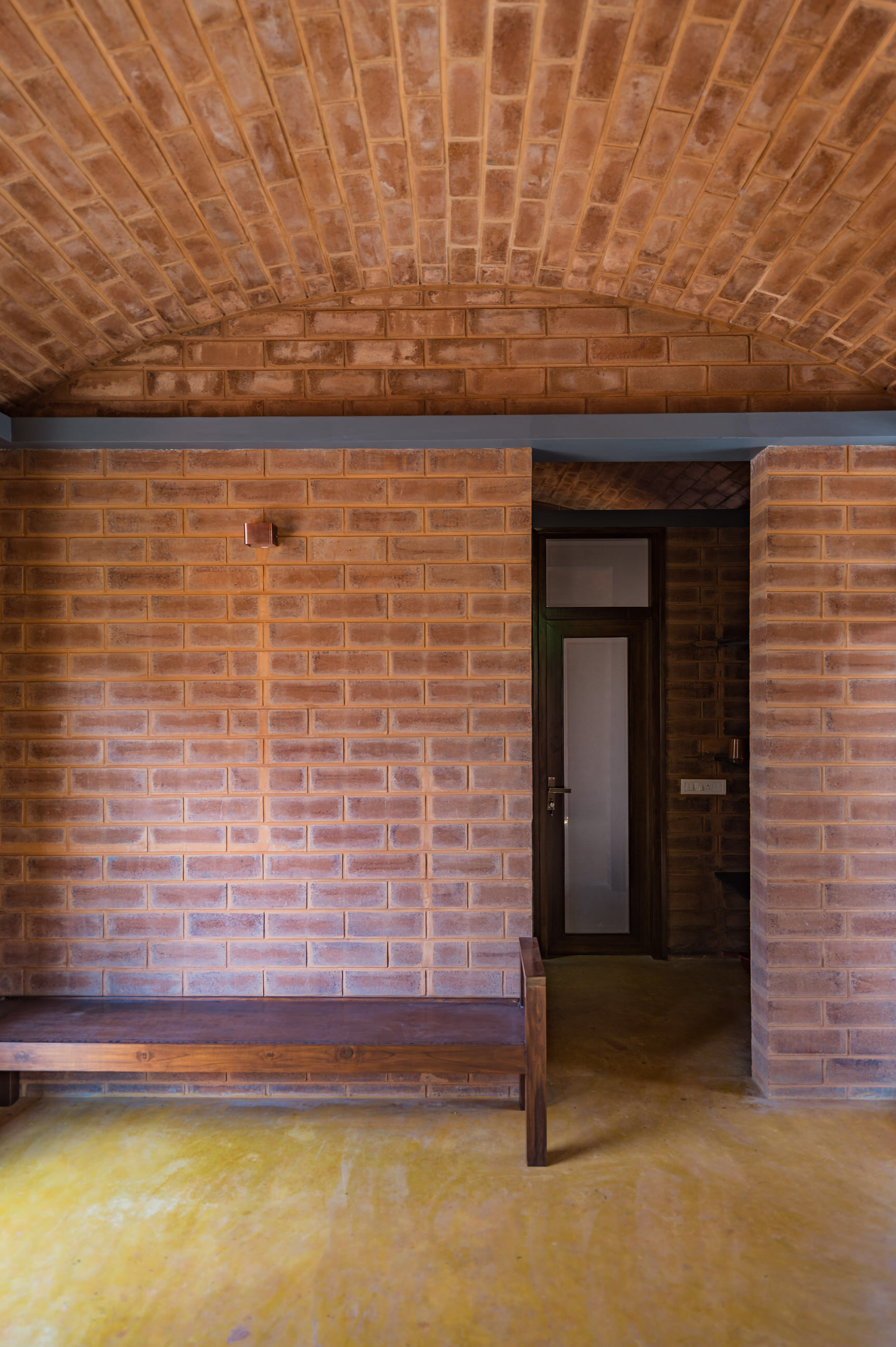 Most of this office building is built out of Earth from foundation to roof. This company manufactures CSEB mud blocks of various customised sizes for Architects and the office needed to have space for workshops and services.