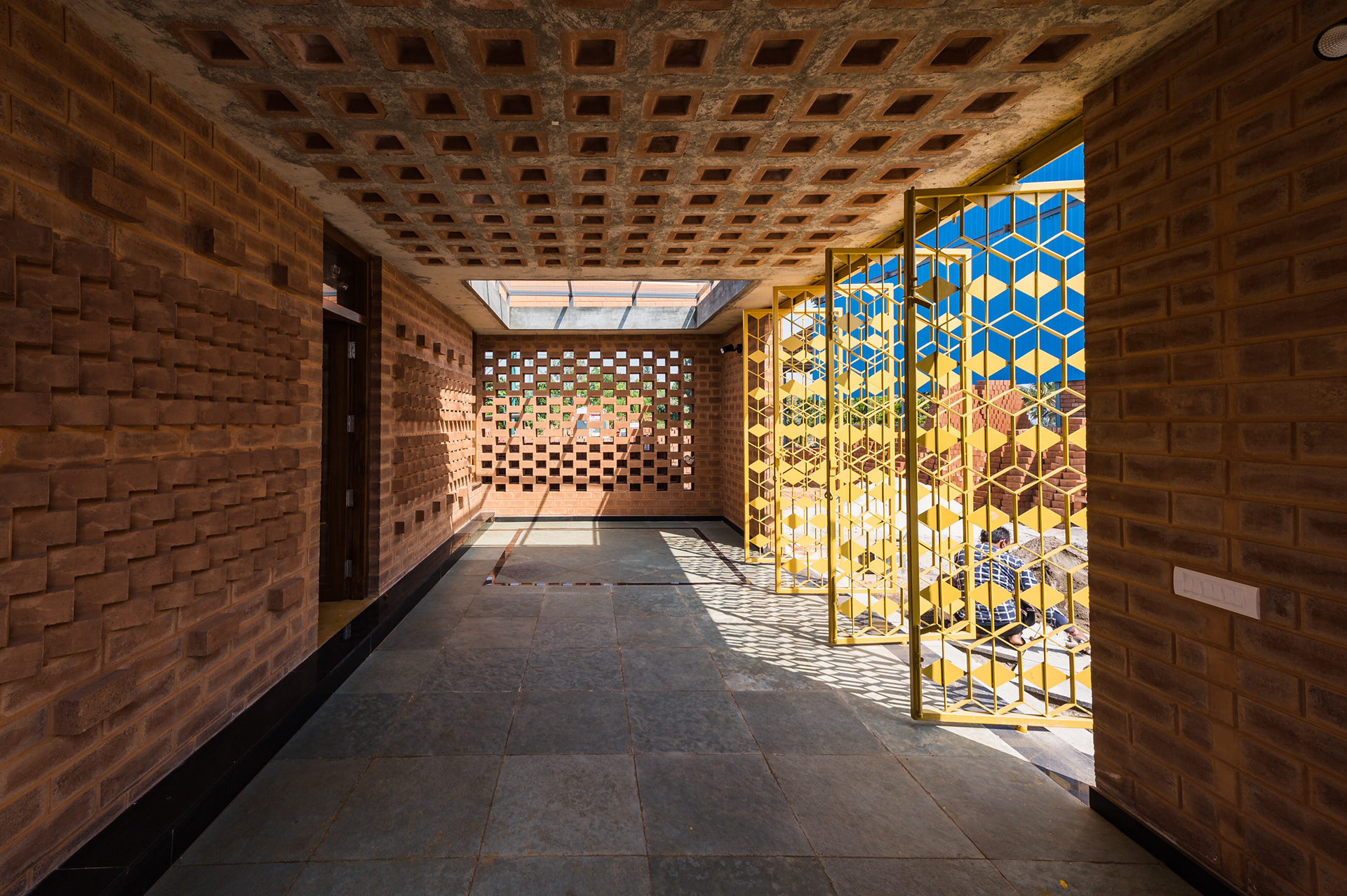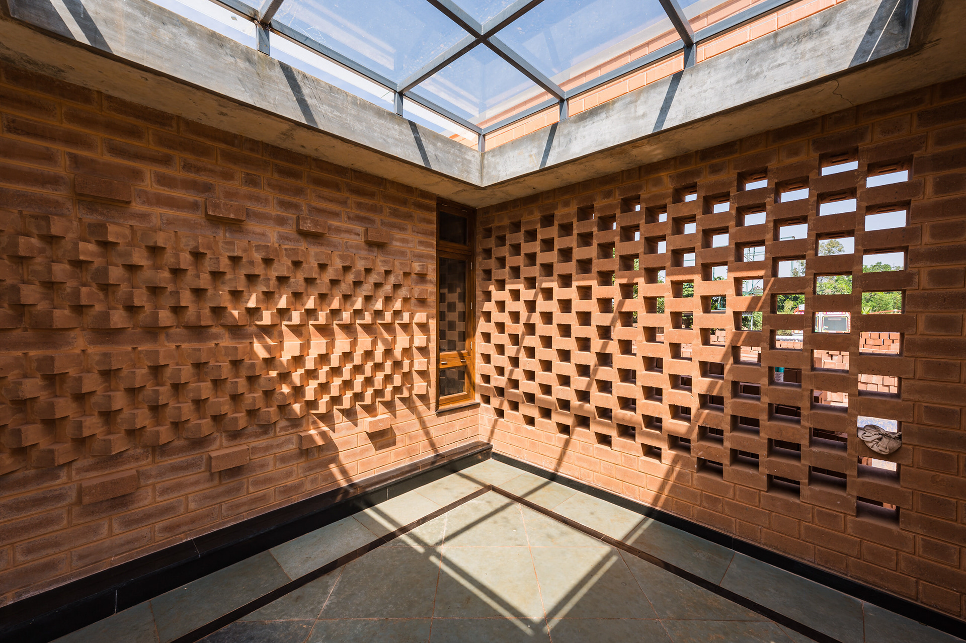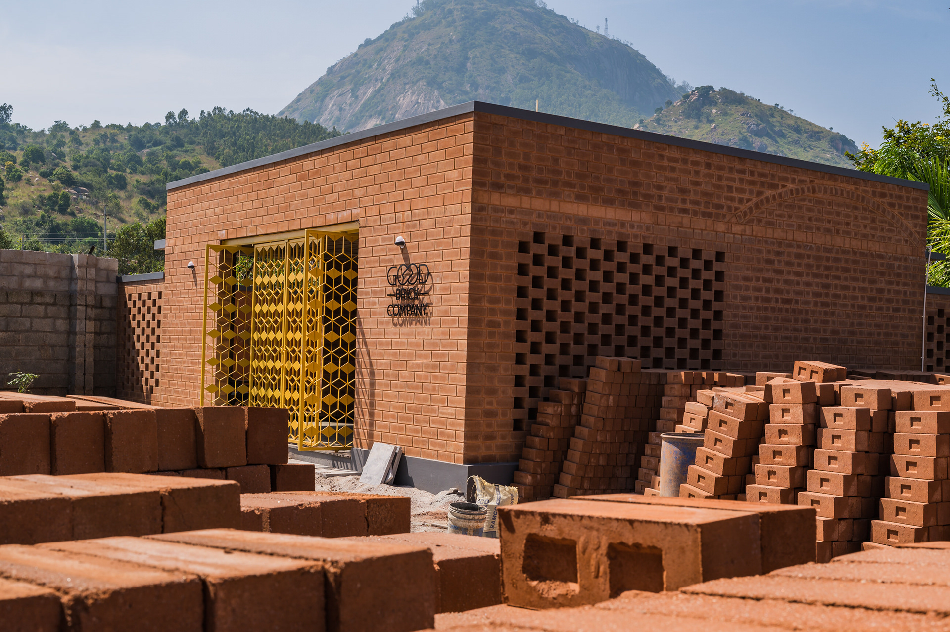 Most of this office building is built out of Earth from foundation to roof. This company manufactures CSEB mud blocks of various customised sizes for Architects and the office needed to have space for workshops and services.